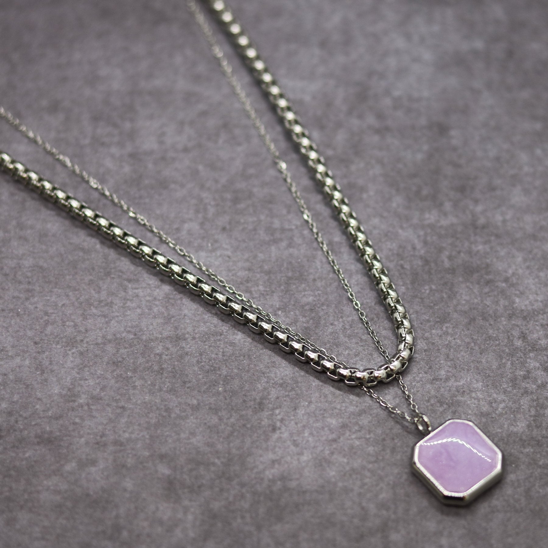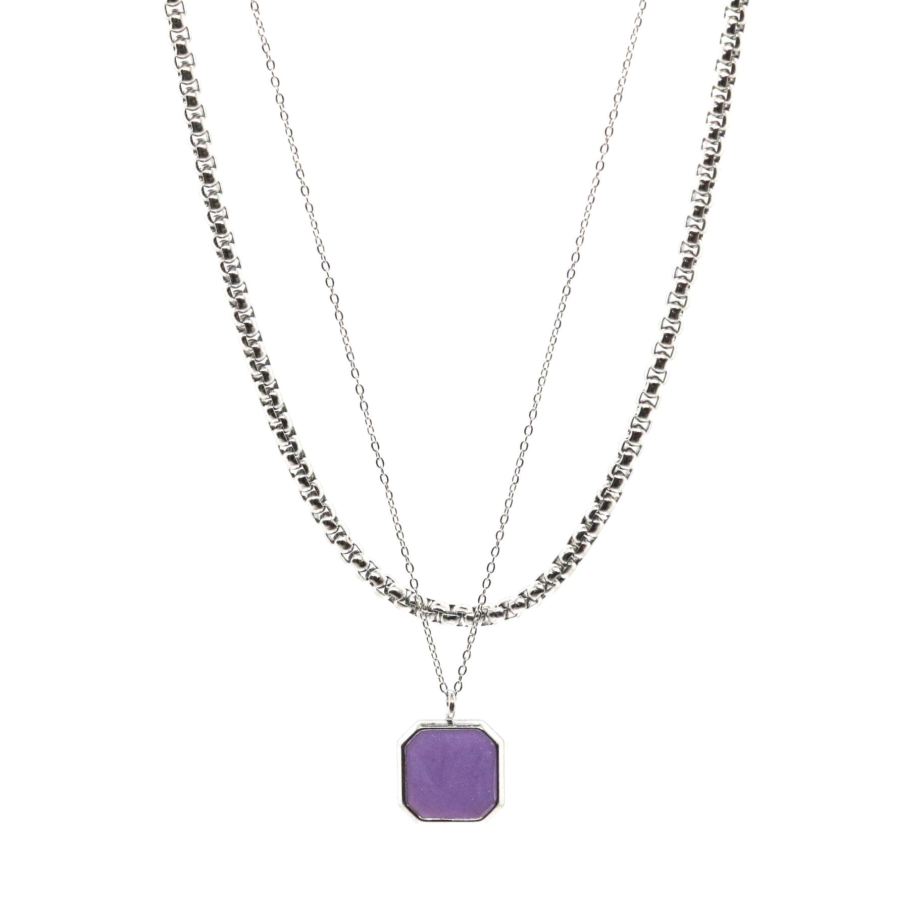 Διπλή ασημί ατσάλινη αλυσίδα λαιμού μια με τετραγωνο ατσαλινο στοιχείο 1,3 x 1,3 και μια ατσαλινη duro 3,5mm.
