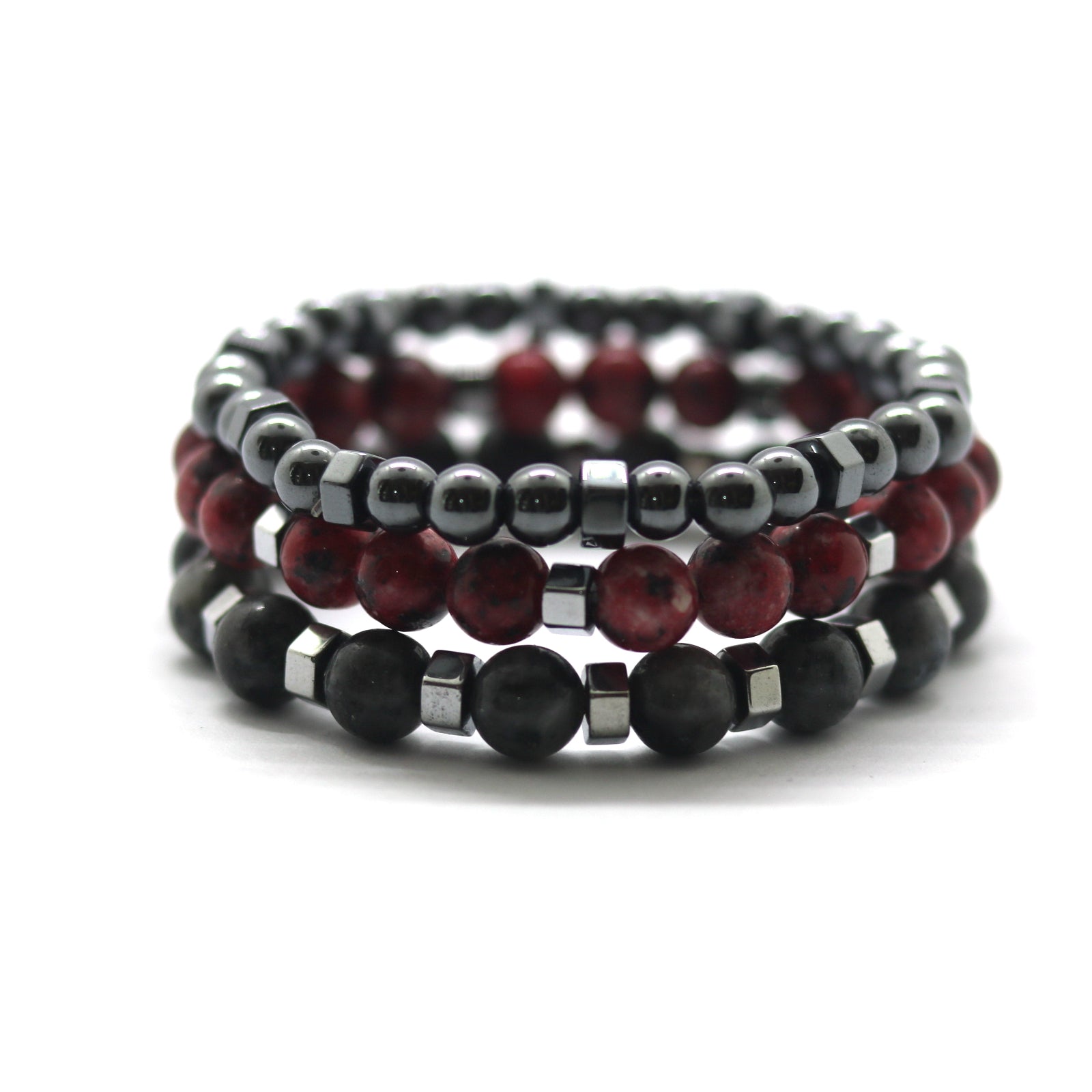 - 3 χειροποιητα βραχιολια απο αιματίτη & ημιπολυτιμες μπιλιες των 8μμ και 6μμ