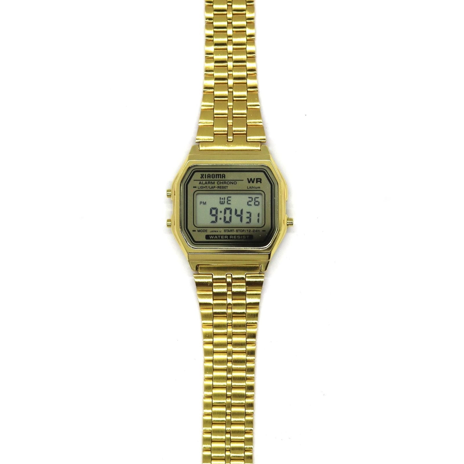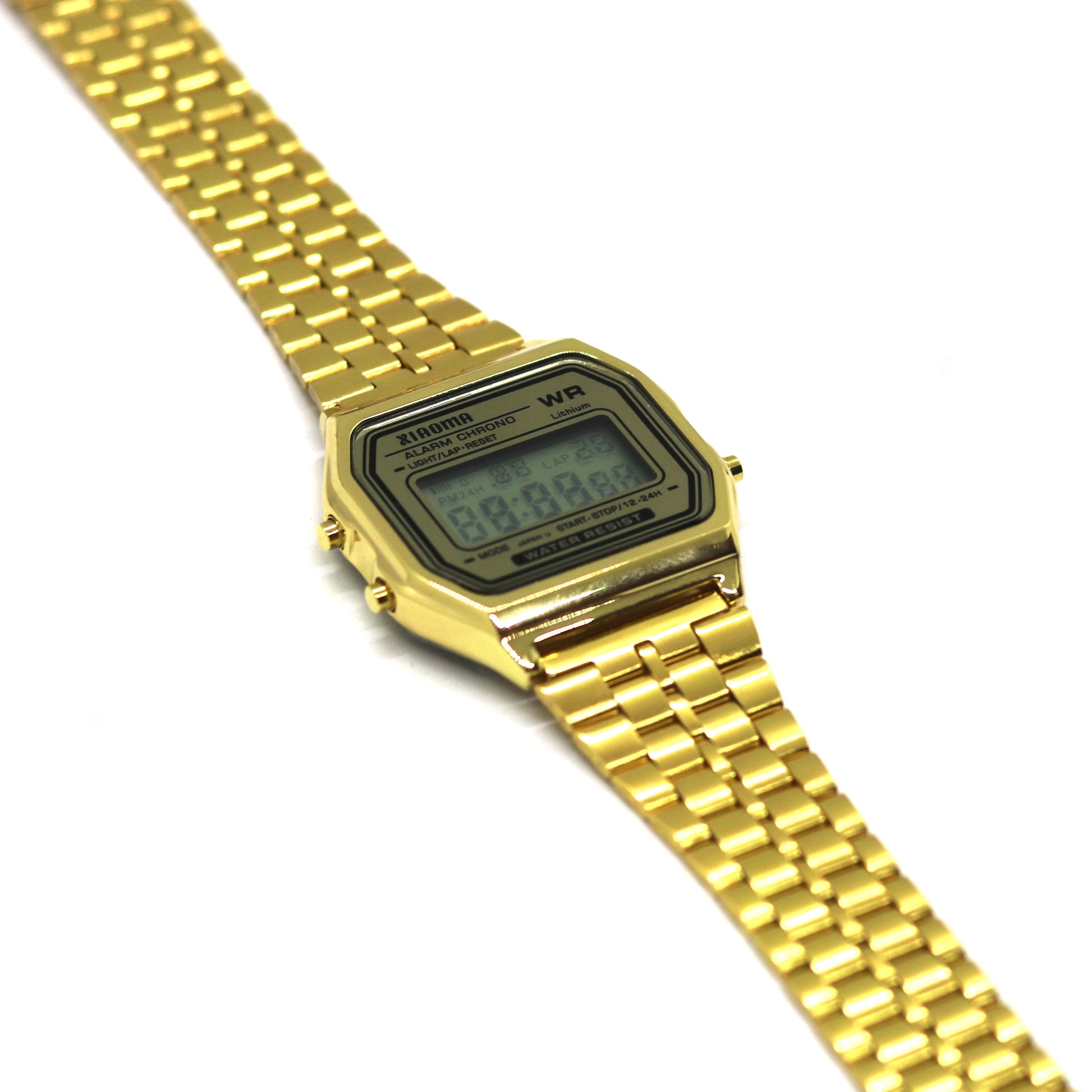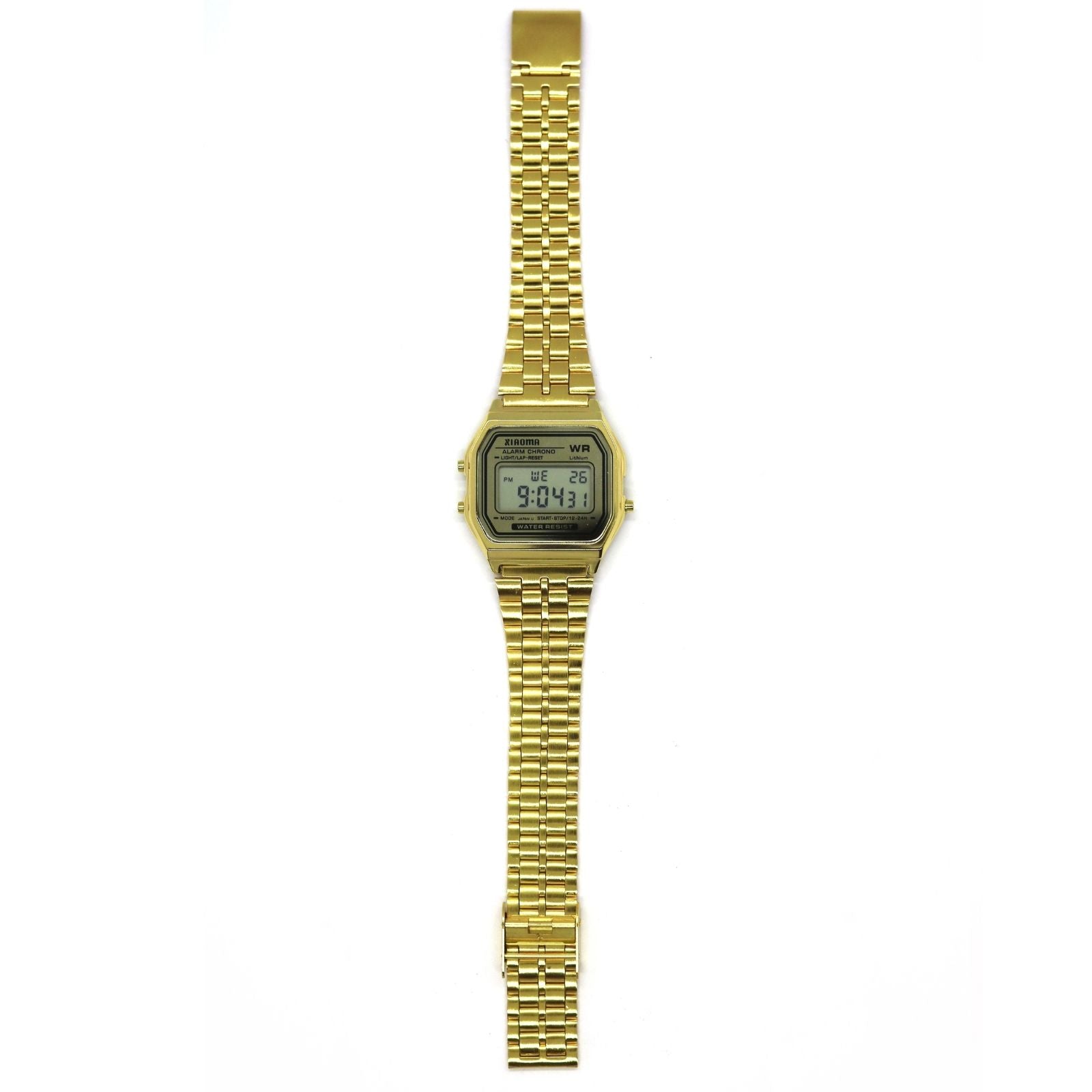 - Ηλεκτρονικό ρολόι σε χρυσό χρώμα με λουράκι από ανοξείδωτο ατσάλι και ρυθμιζόμενο σε μέγεθος.