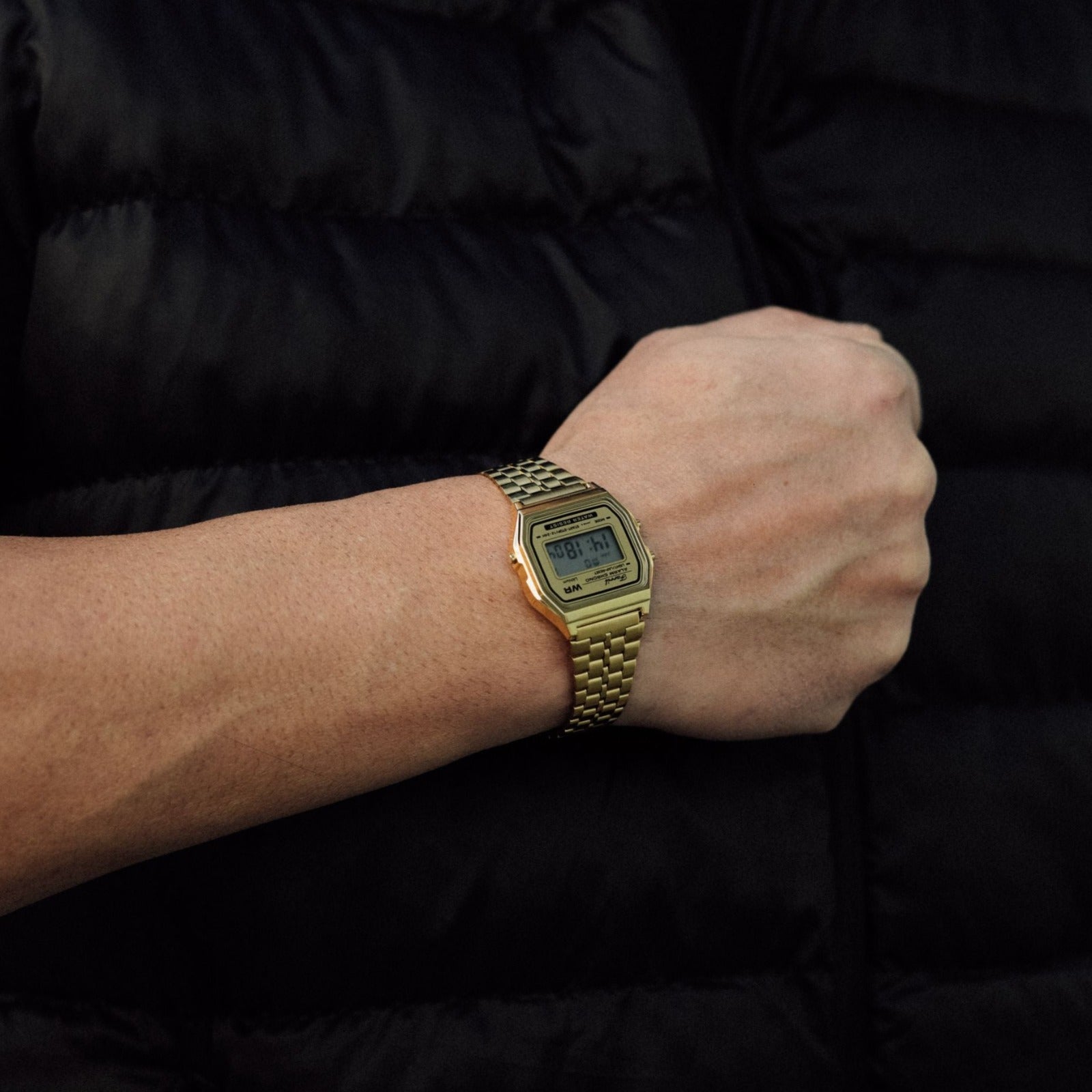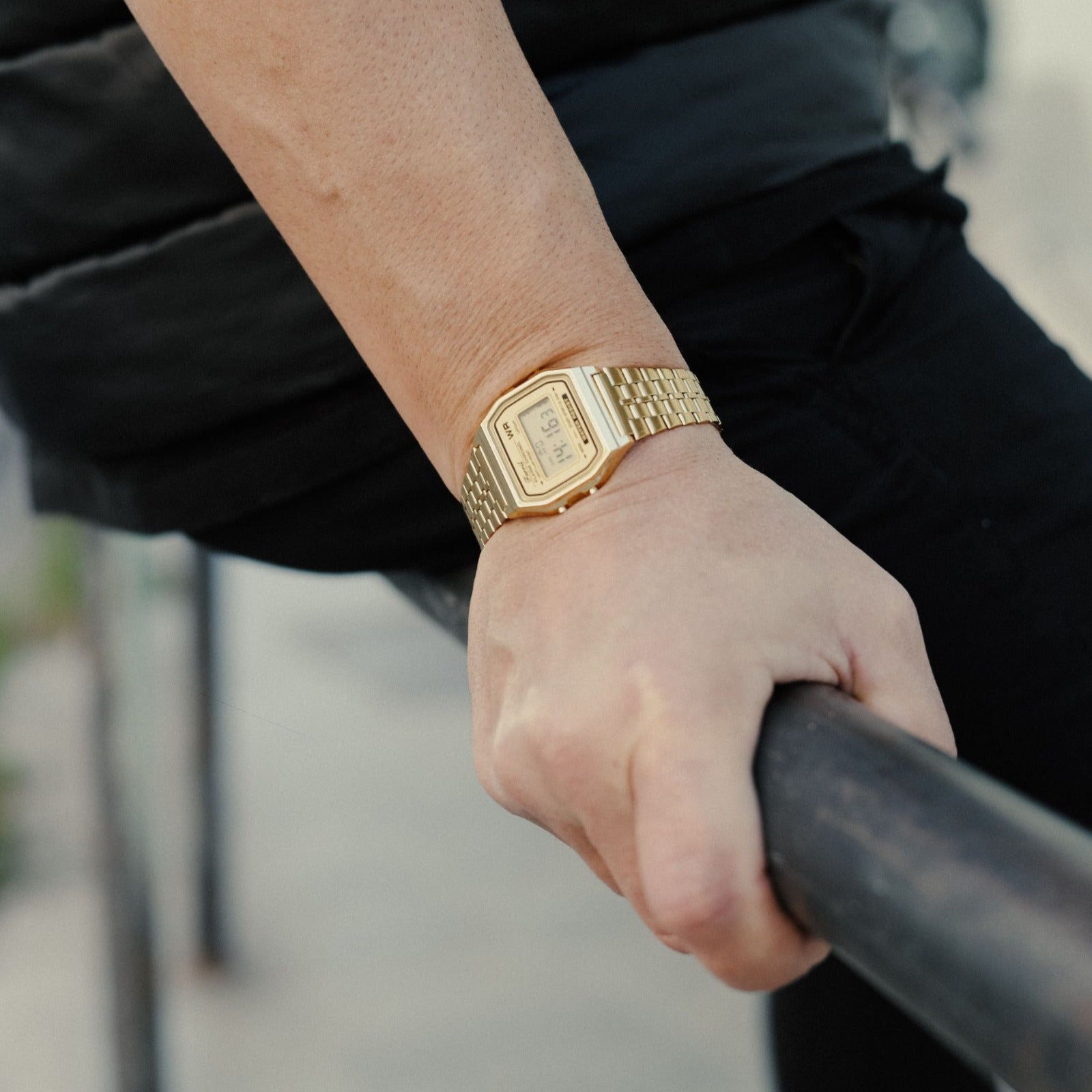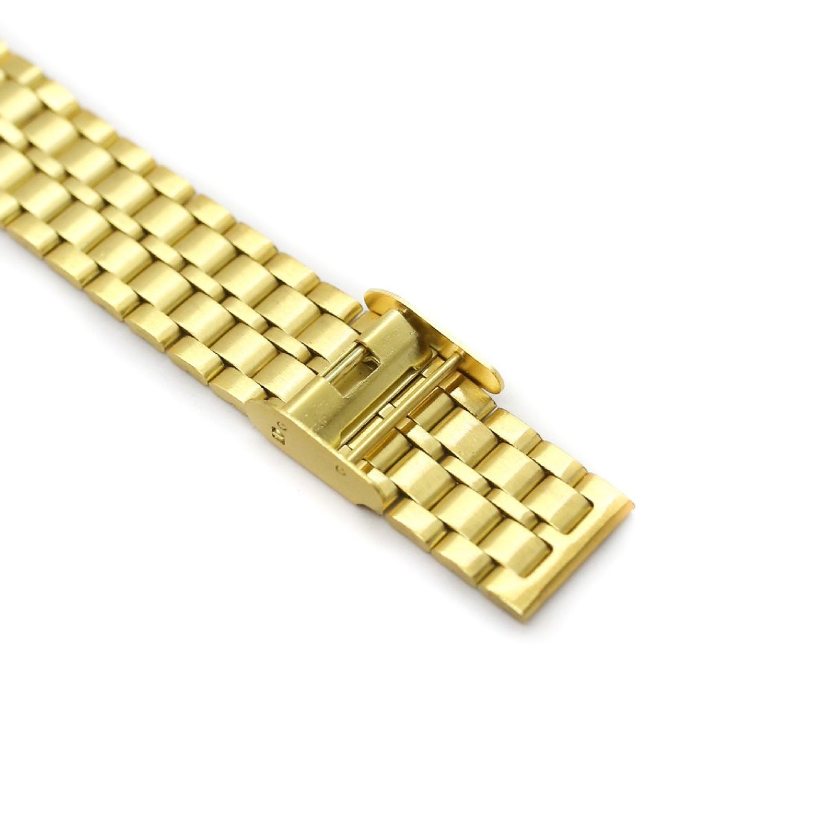 - Ηλεκτρονικό ρολόι σε χρυσό χρώμα με λουράκι από ανοξείδωτο ατσάλι και ρυθμιζόμενο σε μέγεθος.
