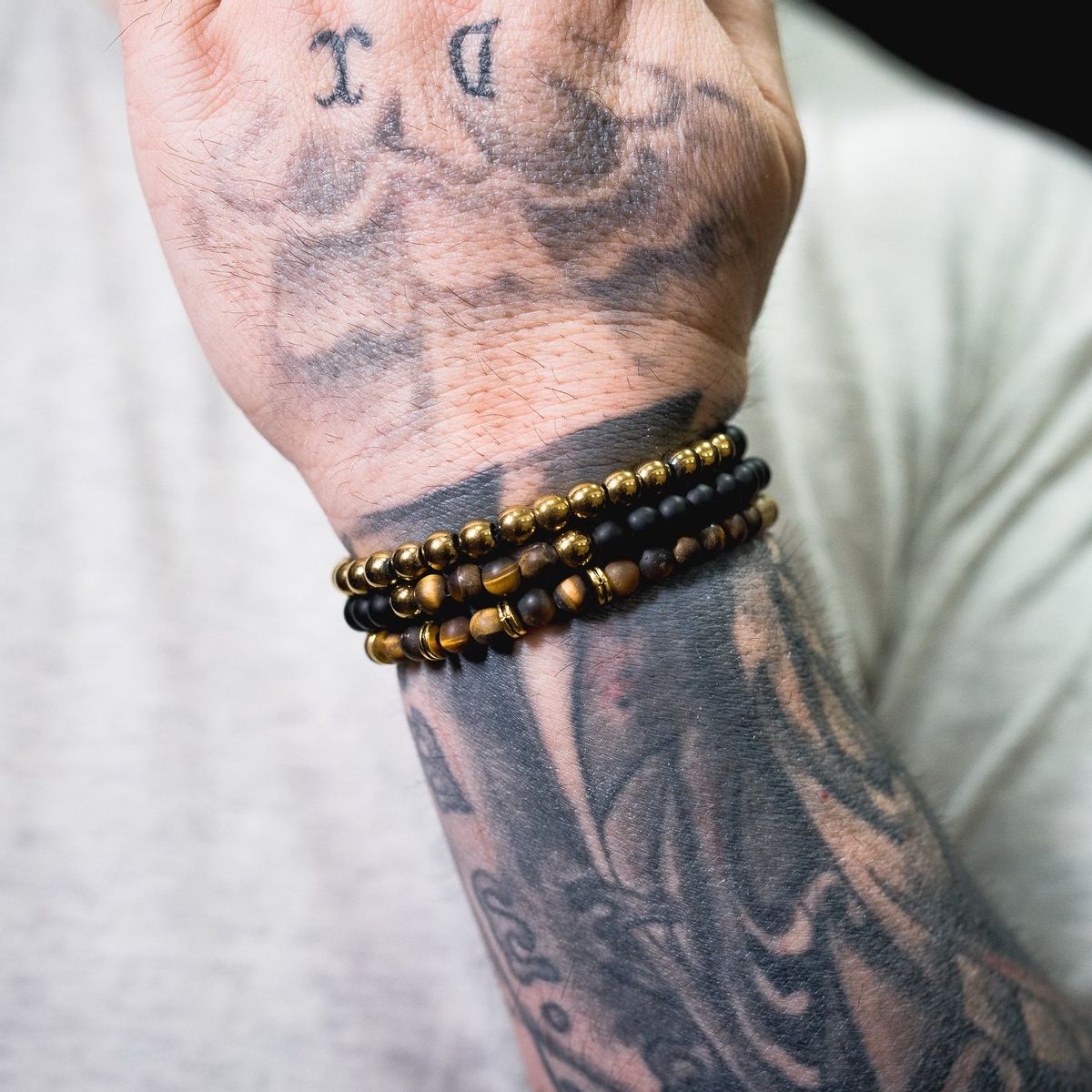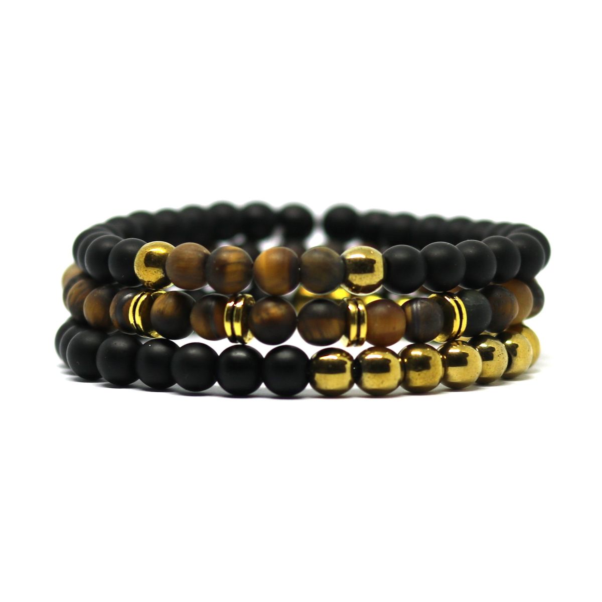 - 3 handmade bracelets made of hematite & semi-precious 6mm beads