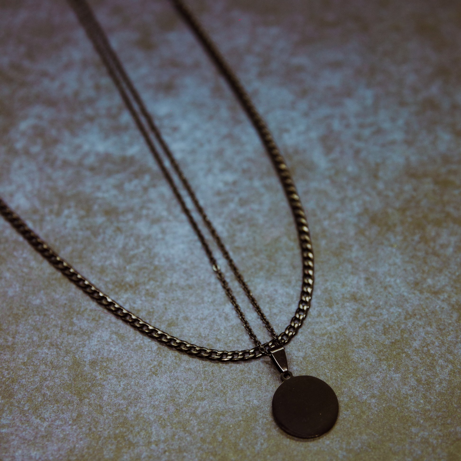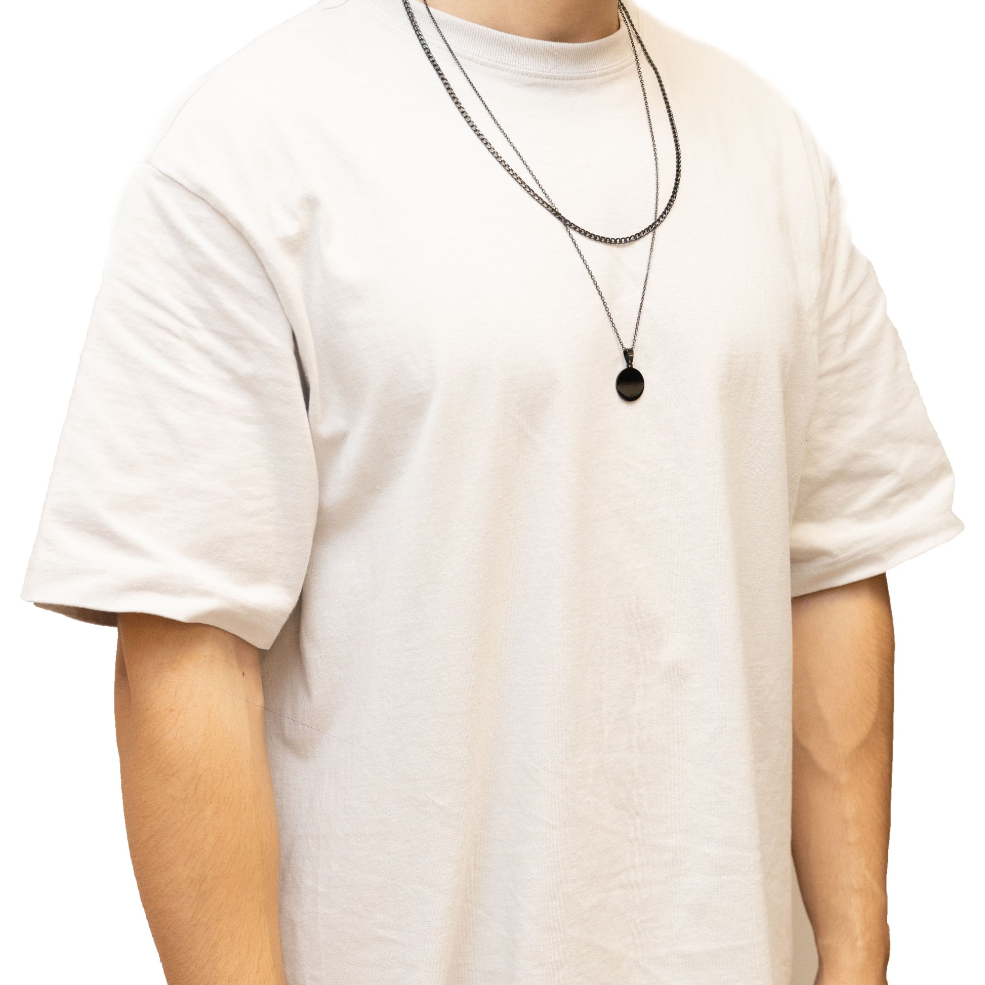 Διπλή μαύρη αλυσίδα λαιμού μια με ατσαλινο στοιχείο 2,2 x 2,2 και μια ατσαλινη hip hop 4mm.
