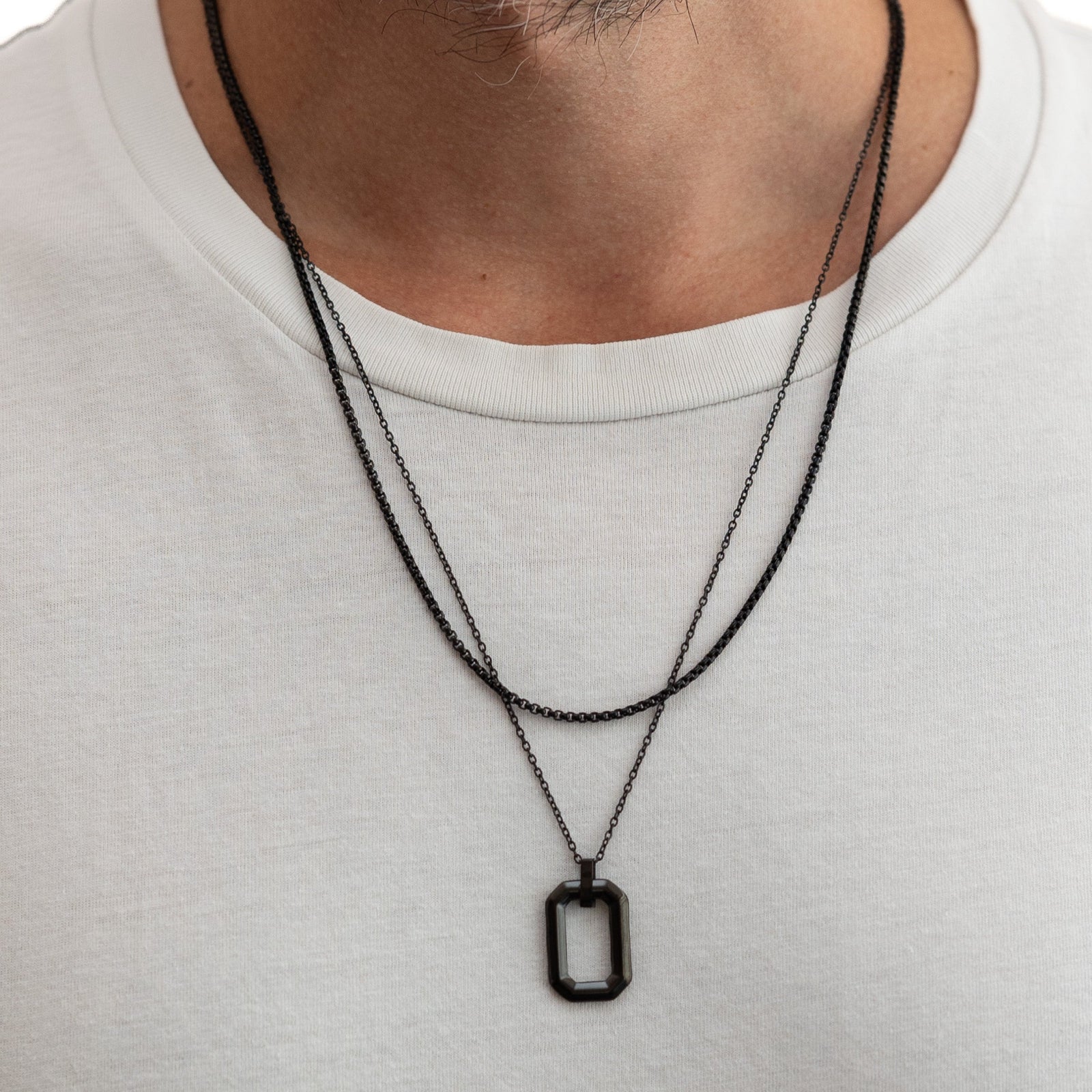 Διπλή αλυσίδα λαιμού μια με ατσαλινο στοιχείο hollow 2 Χ 2,8 και μια ατσαλινη duro 2.5 mm.