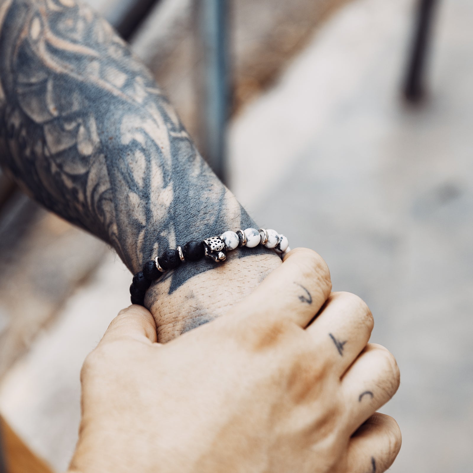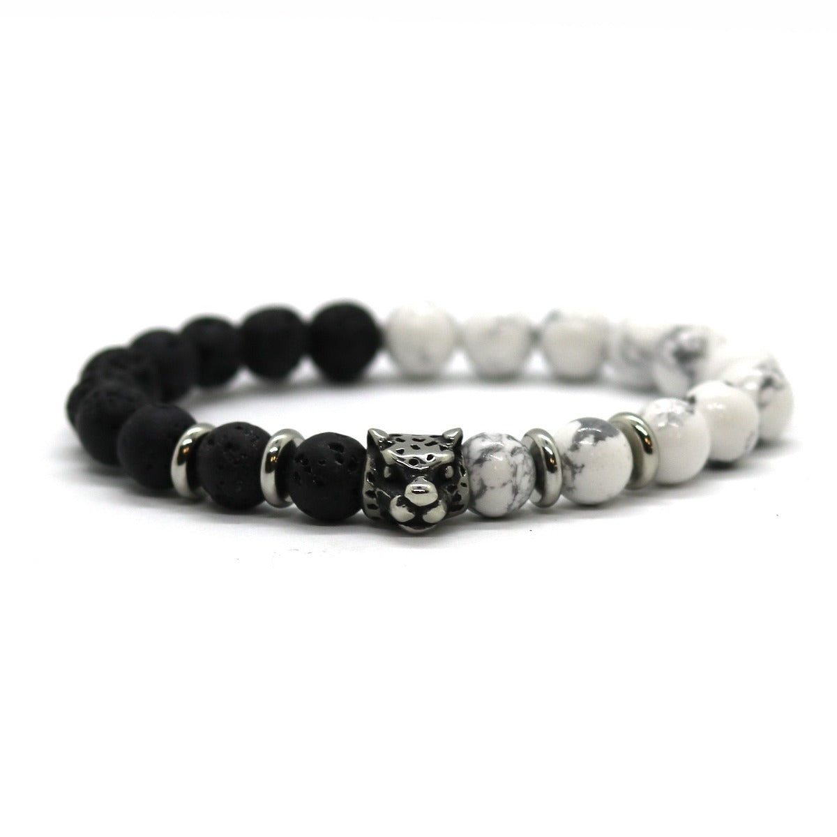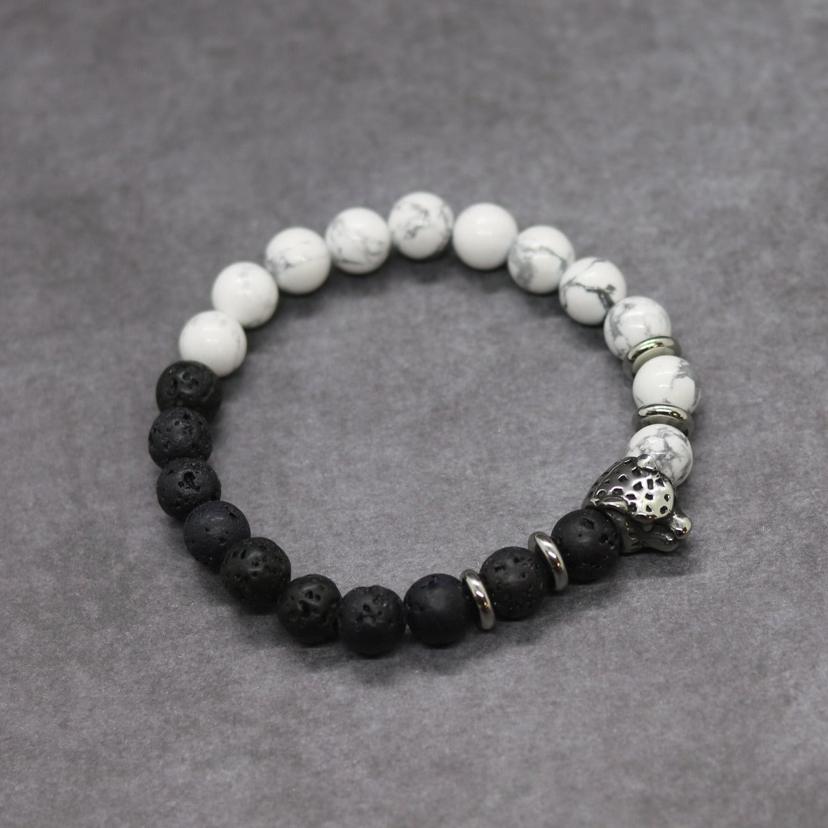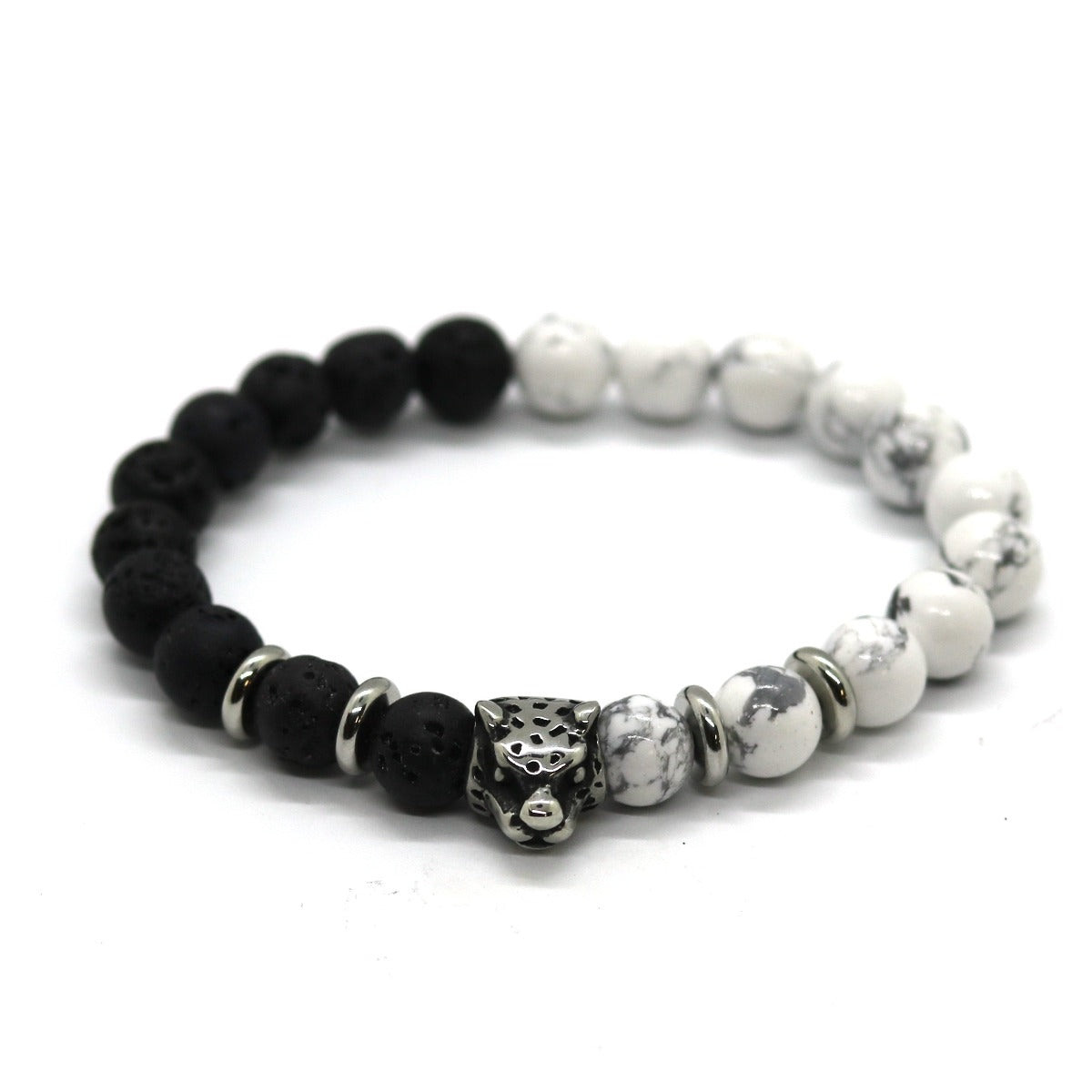- Χάντρες Μαύρης Λάβας και ασπρόμαυρου χαουλίτη 8μμ