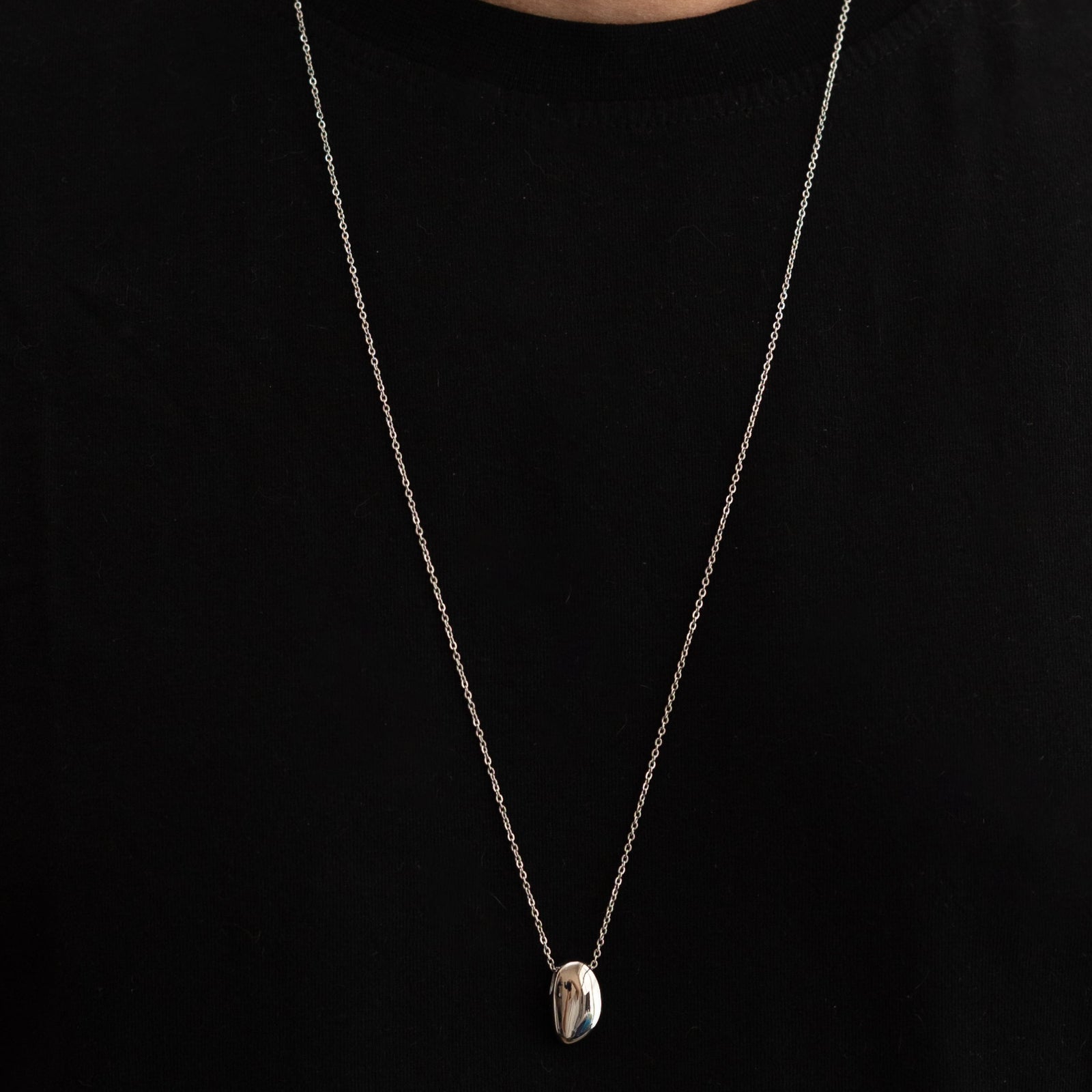 Μεταλικό κολιέ μεγεθους 1.8 Χ 1.1 εκατοστών σε 2 χιλιοστα παχους και 80 εκατοστών περιμετρο ατσάλινη αλυσίδα λαιμού με ασφαλές κούμπωμα