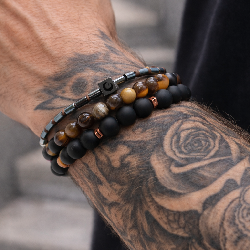 - 3 χειροποιητα βραχιολια απο αιματίτη & ημιπολυτιμες μπιλιες των 6μμ και 2μμ