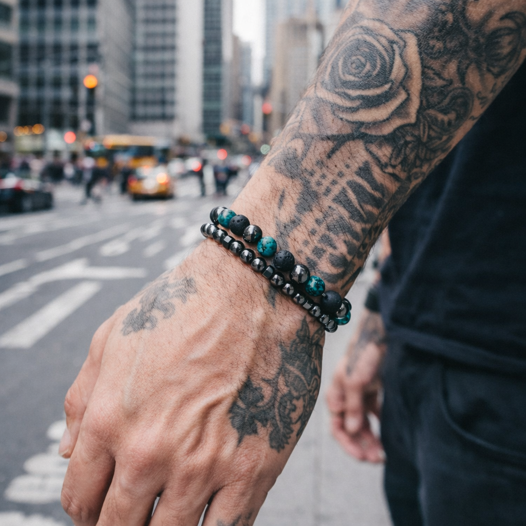 - 2 χειροποιητα βραχιολια με ημιπολυτιμες μπιλιες των 6μμ