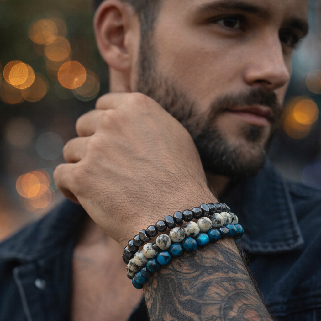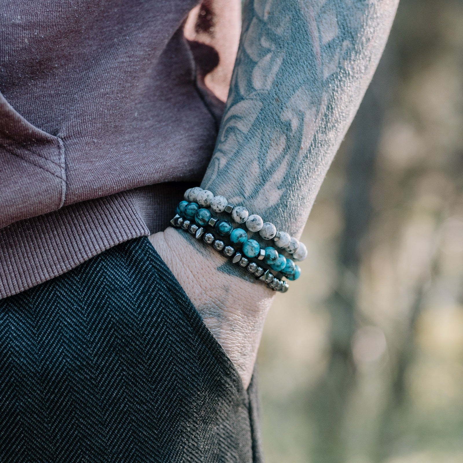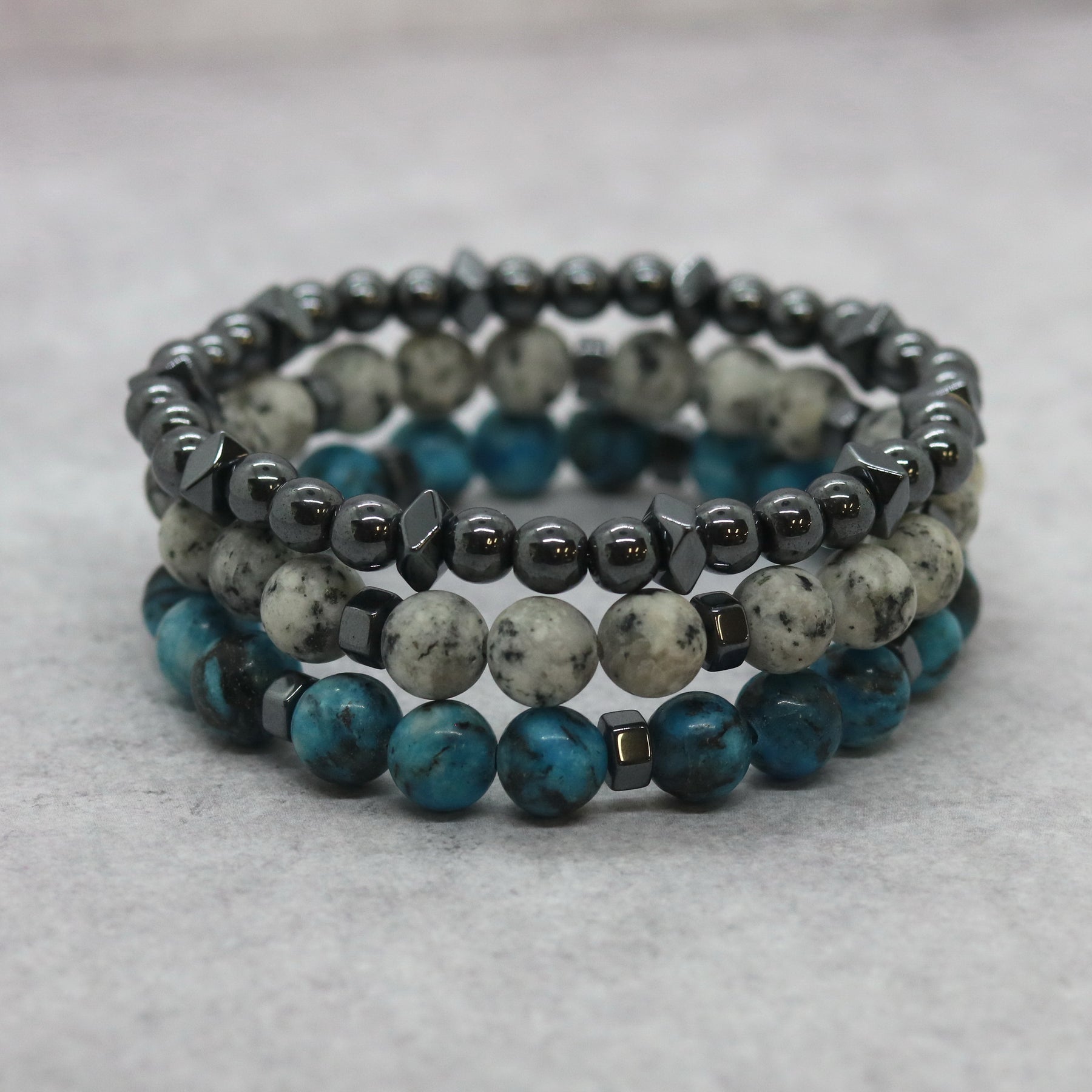 - 3 χειροποιητα βραχιολια απο αιματίτη & ημιπολυτιμες μπιλιες των 6μμ