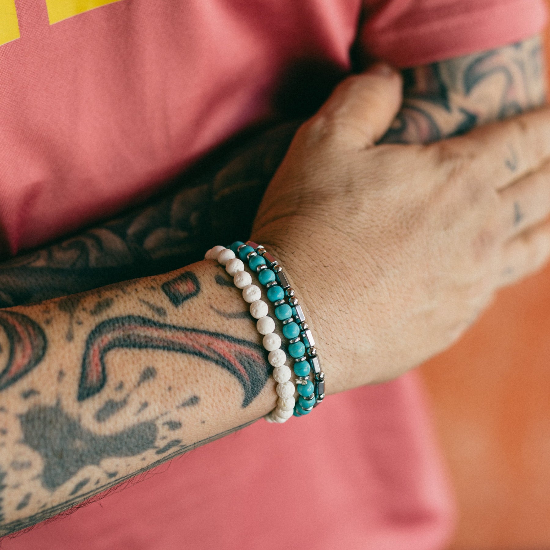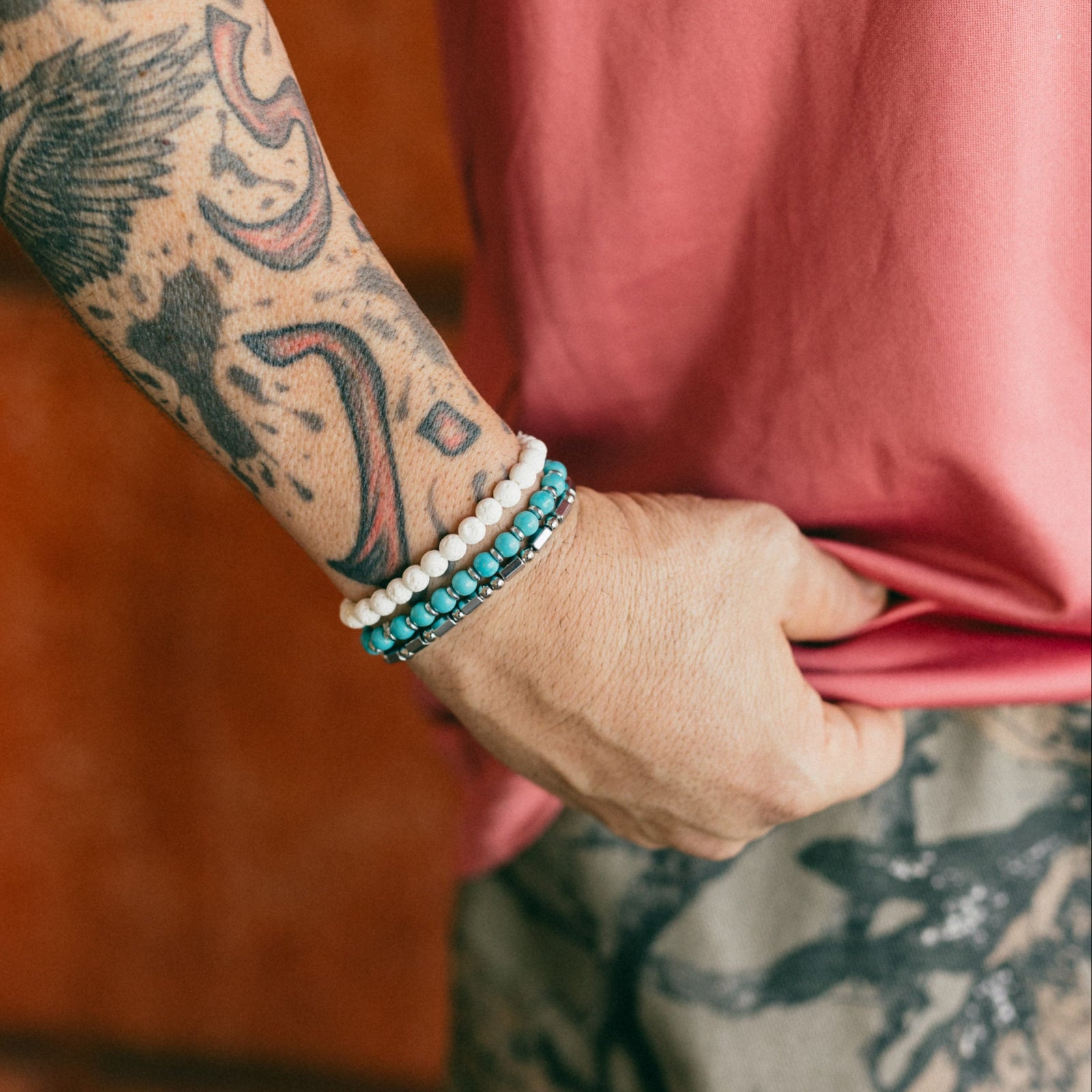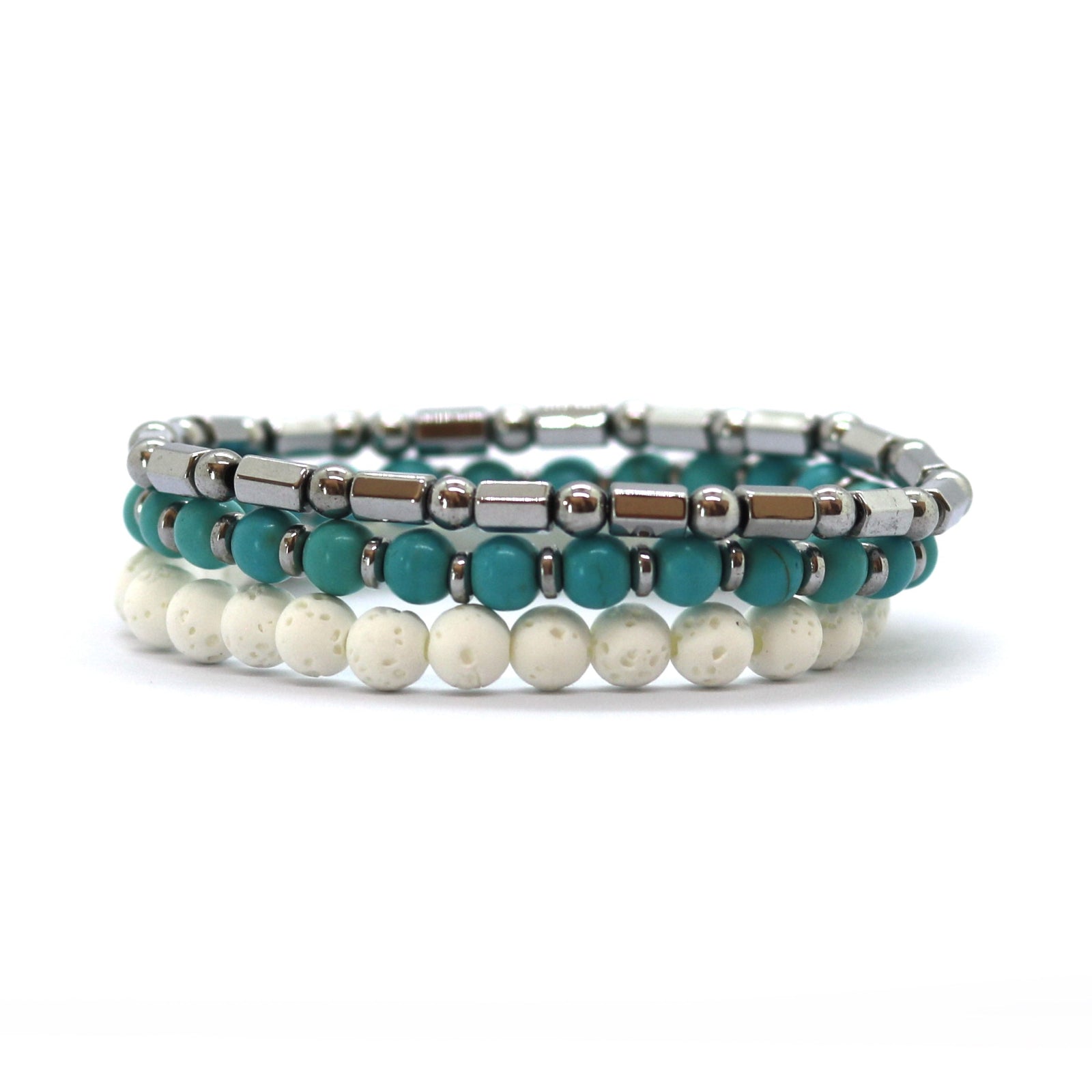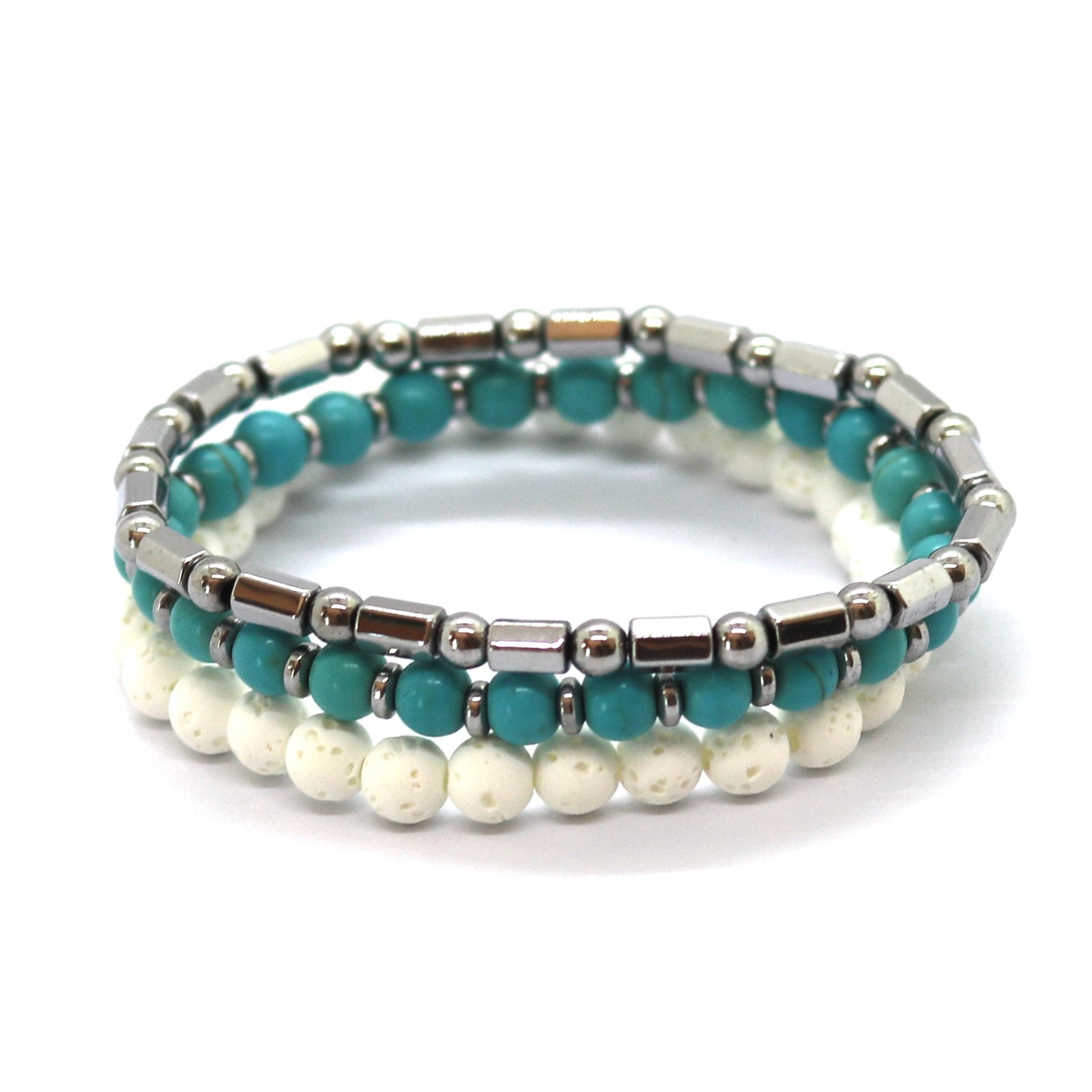 - 3 χειροποιητα βραχιολια απο αιματίτη , lava stone & ημιπολυτιμες μπιλιες των 4μμ