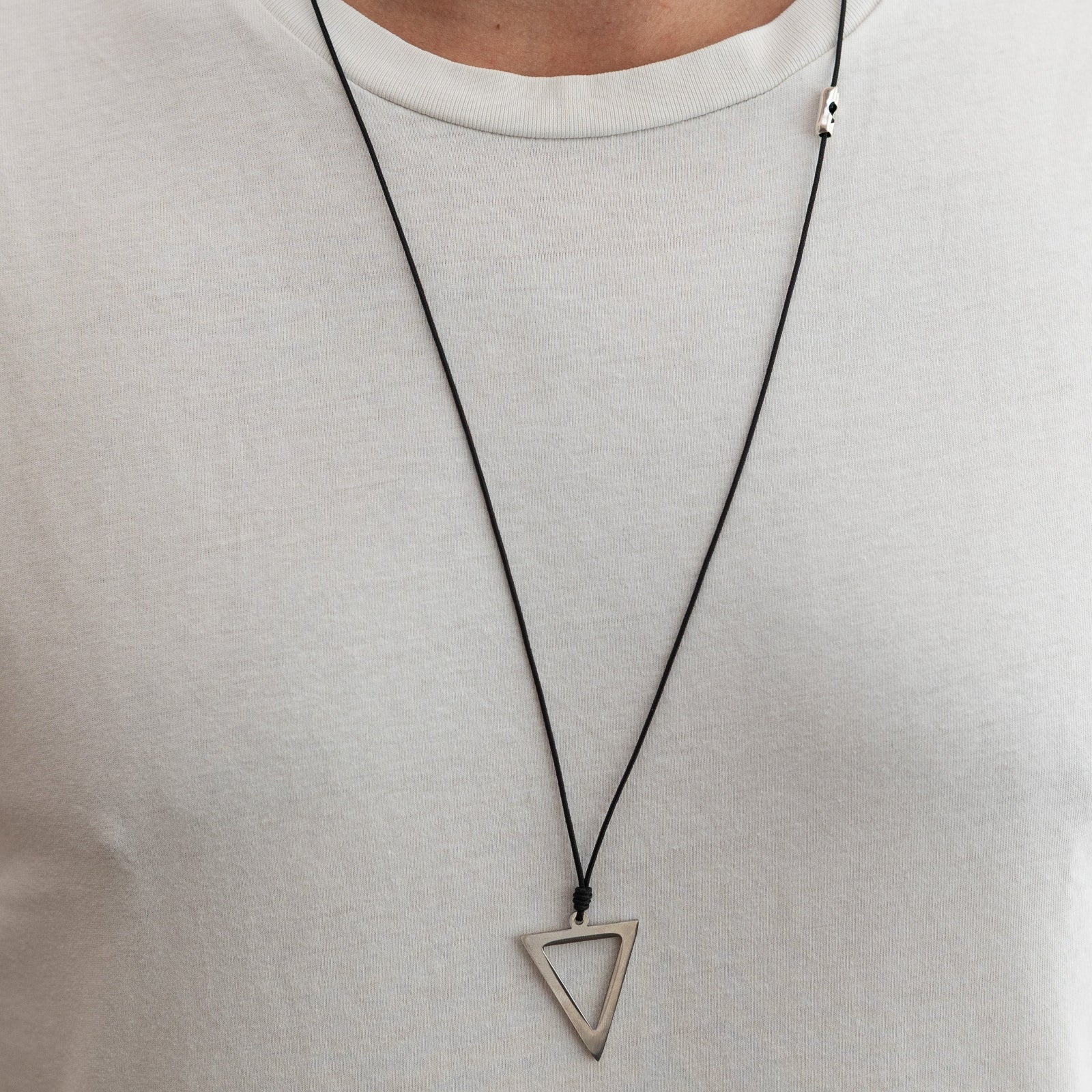 Ατσάλινο κολιέ triangle μεγεθους 4.3 x 2.6 εκατοστών σε 1,5 χιλιοστό παχους και 80 εκατοστών περιμετρο μαυρο  κορδονι