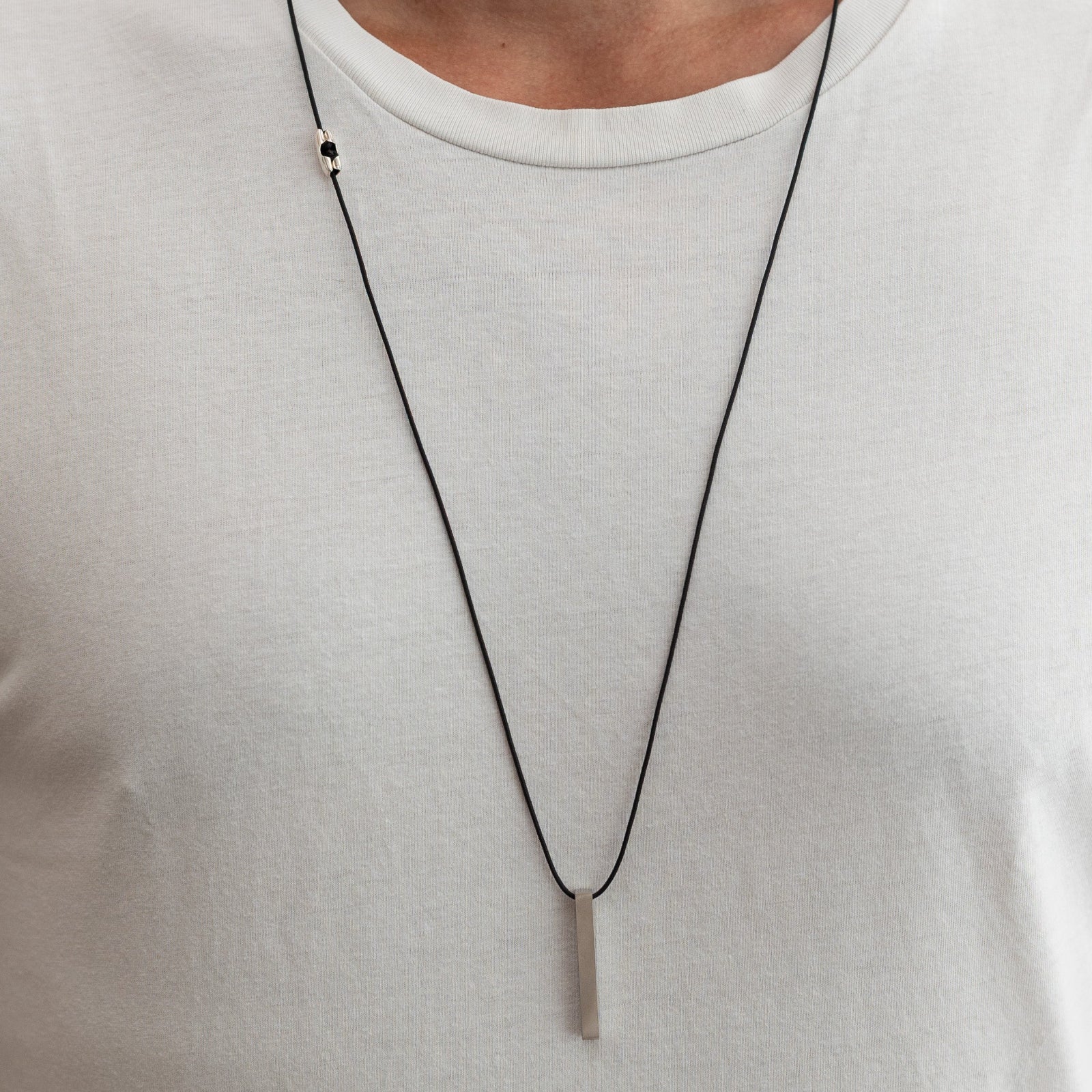 Ατσάλινο κολιέ tube μεγεθους 3.9 X 0,4 εκατοστών σε 1.5 χιλιοστα παχους και 90 εκατοστών περίπου περιμετρο μαύρο κορδόνι